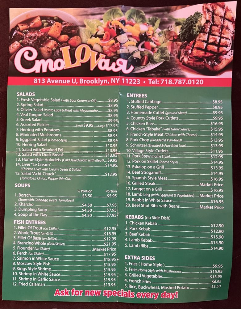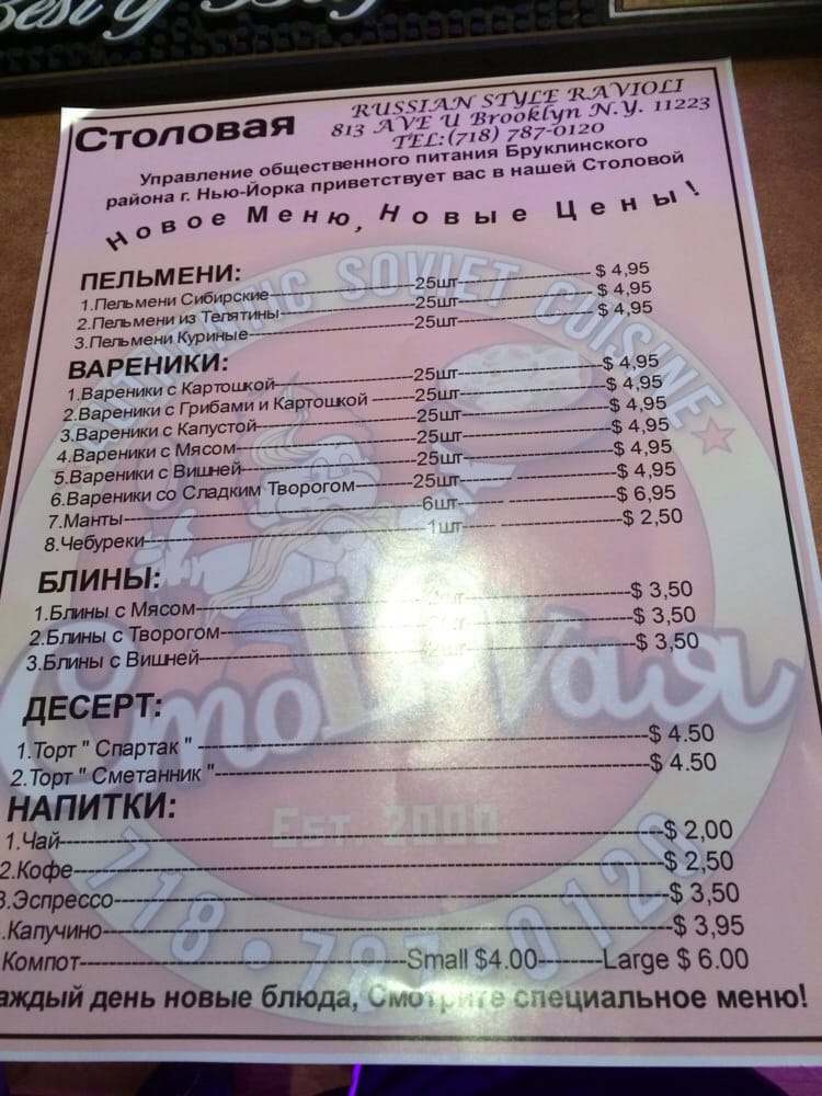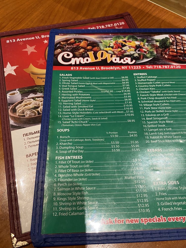 Stolovaya, a haven for authentic Russian cuisine in Brooklyn, offers a cozy Soviet Union diner vibe with delicious, affordable dishes. Customers rave about the pelmeni, vareniki, and shashliki with home fries, as well as the borscht and blintz. The staff is friendly and quick with orders, creating a welcoming atmosphere for families and friends alike. With a full bar, outdoor seating, and catering options, Stolovaya caters to a variety of dining needs. Be sure to ask for an English menu if needed, and don't miss out on the nostalgic experience and mouthwatering flavors that this hidden gem has to offer. Make a trip to Stolovaya for a taste of traditional Russian and Ukrainian cuisine at moderate prices and generous portions.